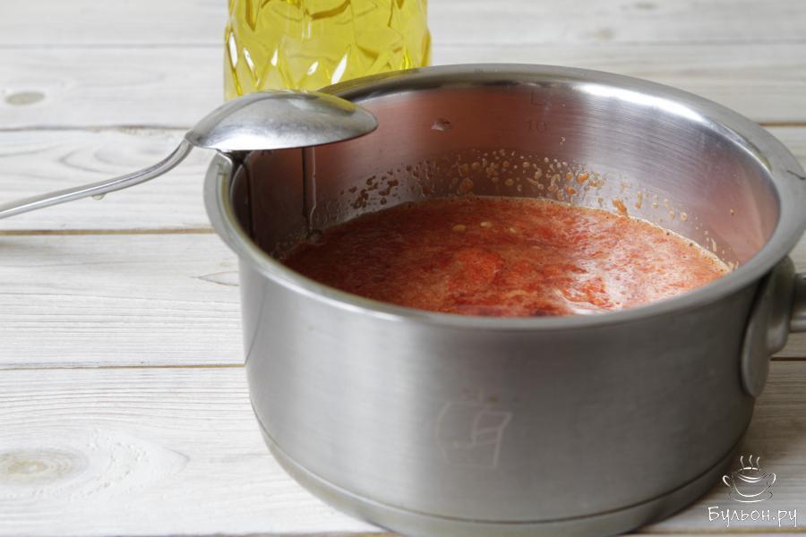 6. Перелить в сотейник, добавить растительное масло. Довести до кипения, убавить огонь и варить 1-1,5 часа.