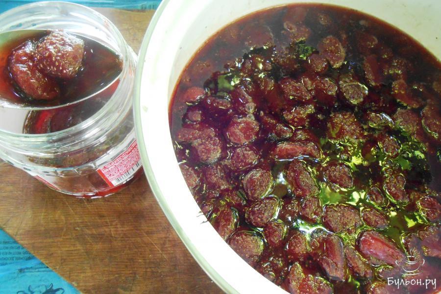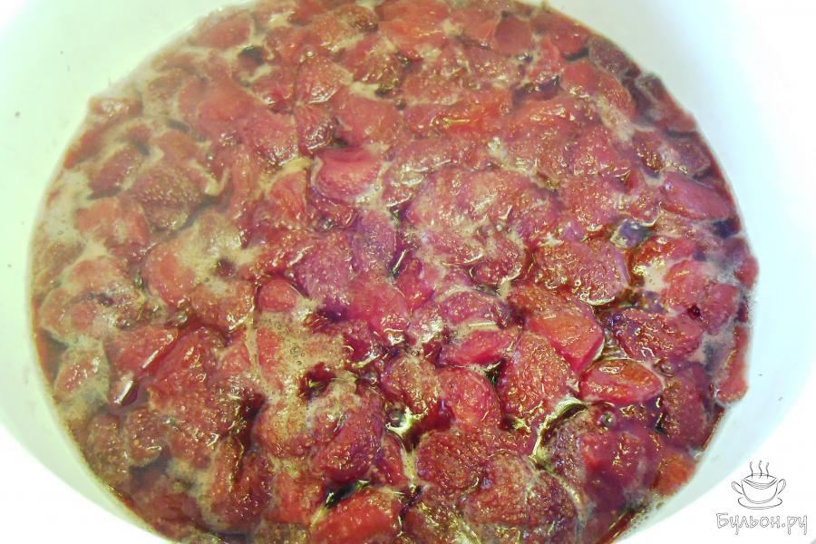 5. Начинаем варить наше варенье. Ставим на плиту и готовим на среднем огне минут 5 после закипания, не забываем снимать образовавшуюся пенку.