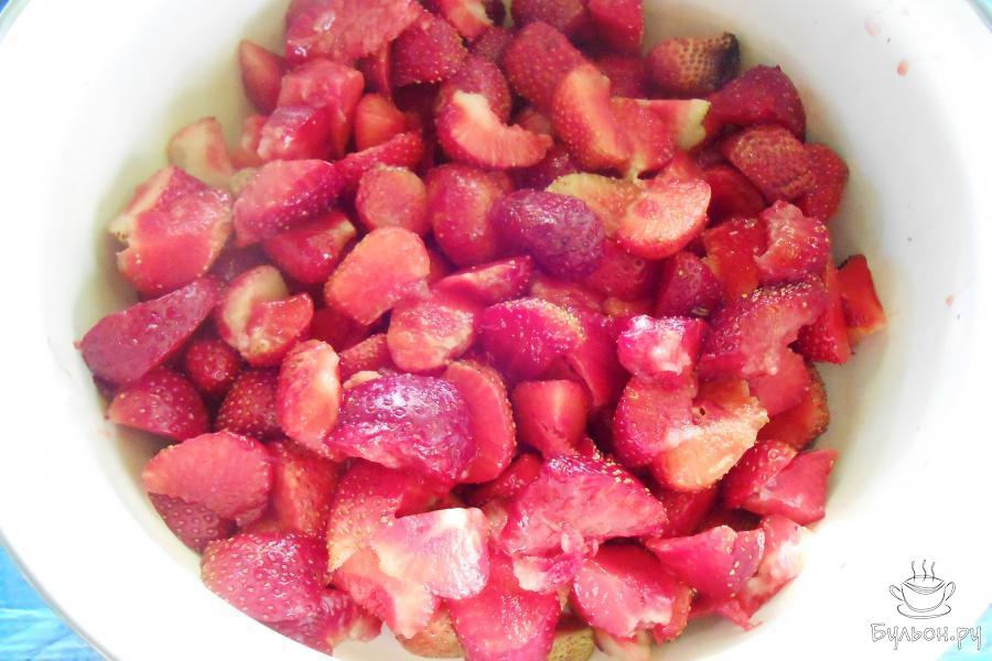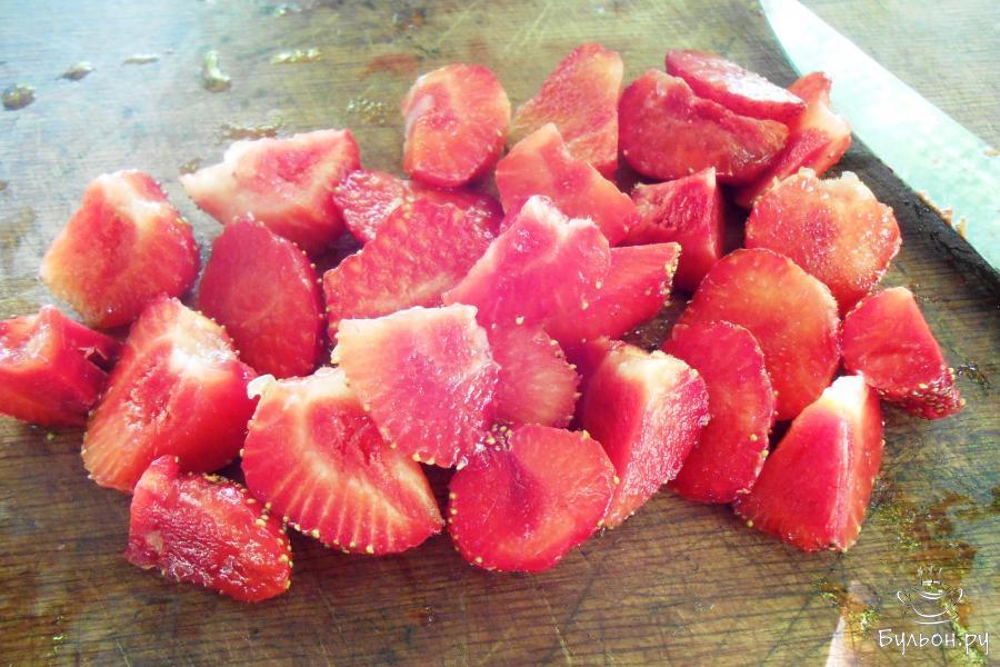 2. Приступаем к нарезанию, если крупная ягода, то разрезаем дольками, если мелкая, то оставляем целенькую.