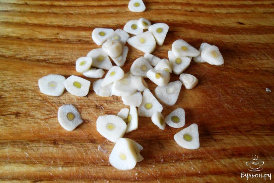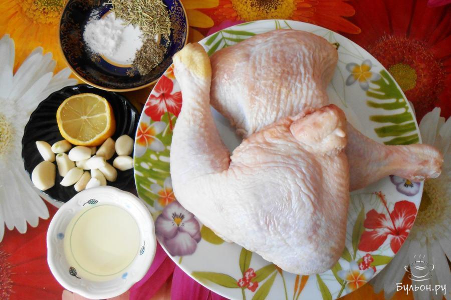 1. Подготовить необходимые продукты. Куриные окорочка нужно помыть и обсушить. Зубчики чеснока очистить и промыть.