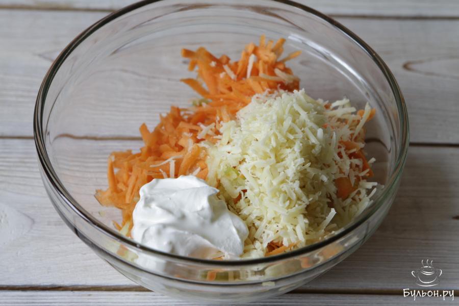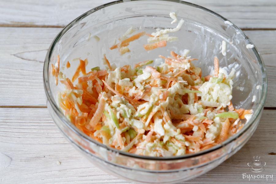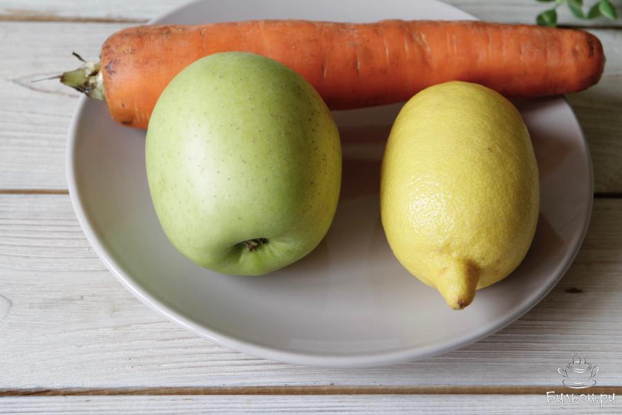 2. С моркови снять кожуру, что же касается яблока, снимать или нет, то здесь дело вкуса. Натереть морковь и яблоко на терке. Сбрызнуть лимонным соком.