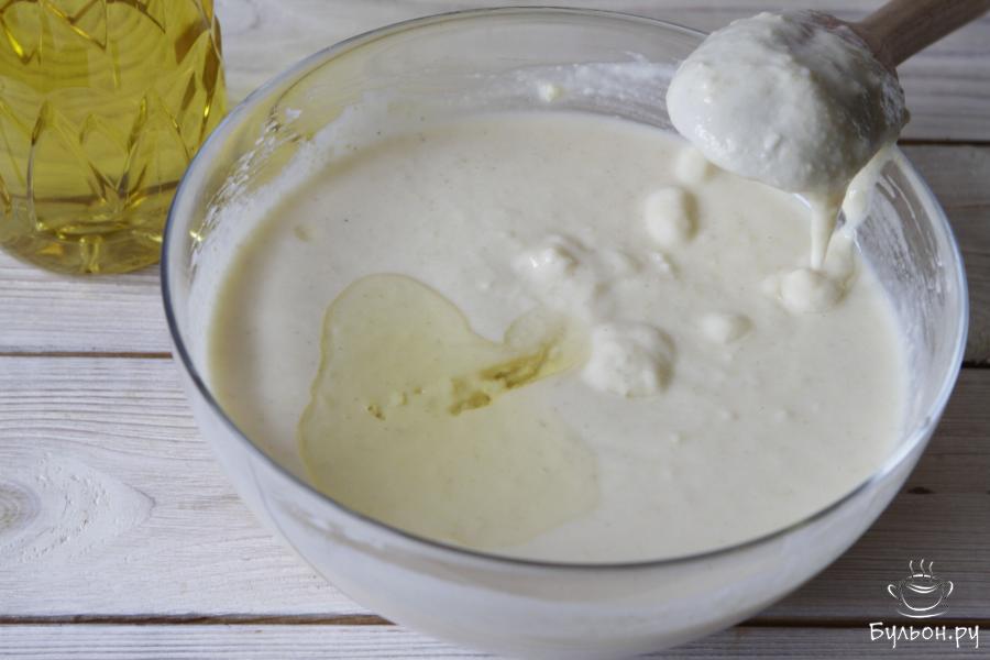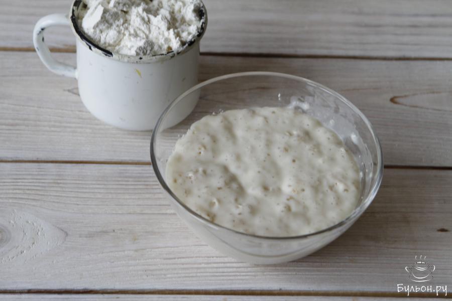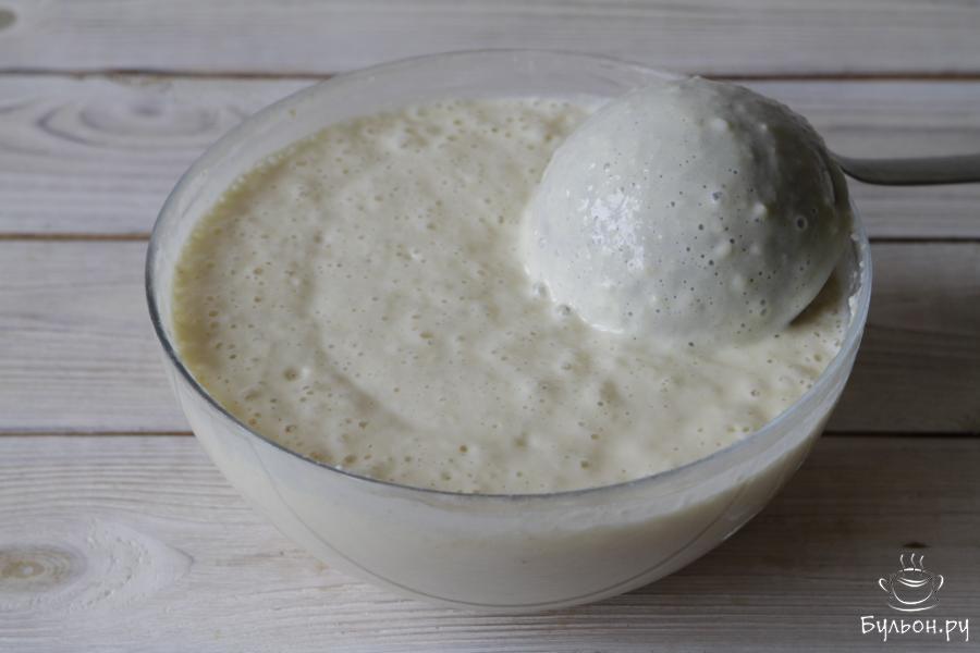 2. Из 100 мл молока, 1 ст. л сахара, дрожжей и муки поставить опару. Все ингредиенты соединить, размешать и дать опаре подняться.