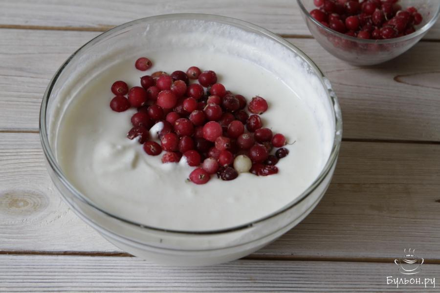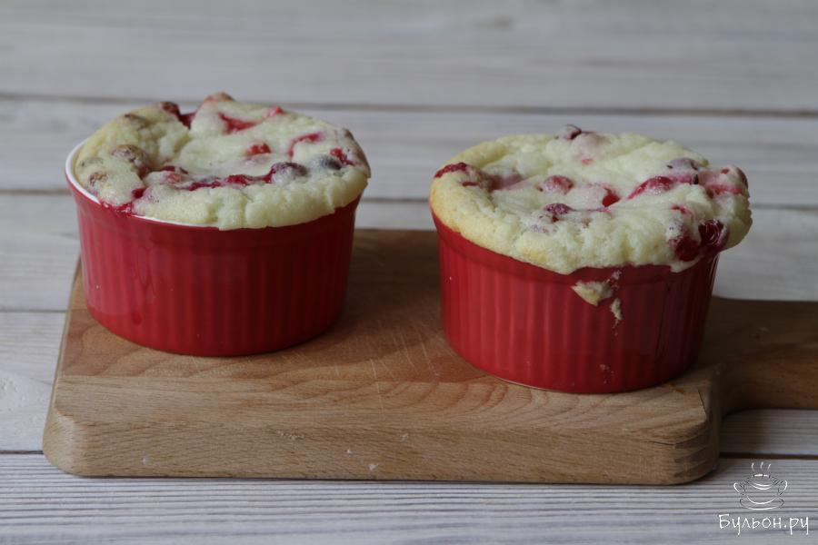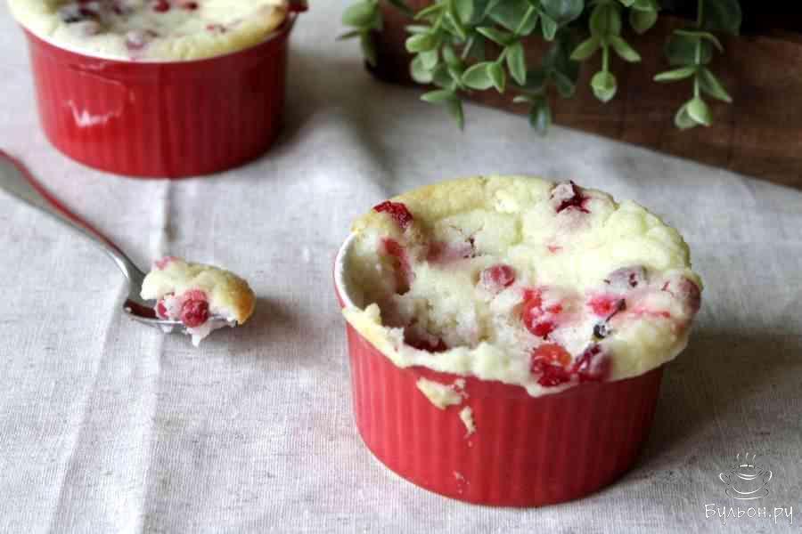 Запеканка из манки с клюквой один из вариантов вкусного и сытного завтрака. Клюкву в запеканке вполне можно заменить любой другой ягодой. Готовится запеканка исключительно из манной крупы без добавления муки. Сахар по желанию можно совсем исключить или наоборот добавить чуть больше, нежели указано в рецепте. Запекать и подавать запеканку лучше всего в небольших порционных формах. По желанию перед подачей запеканку можно присыпать сахарной пудрой.