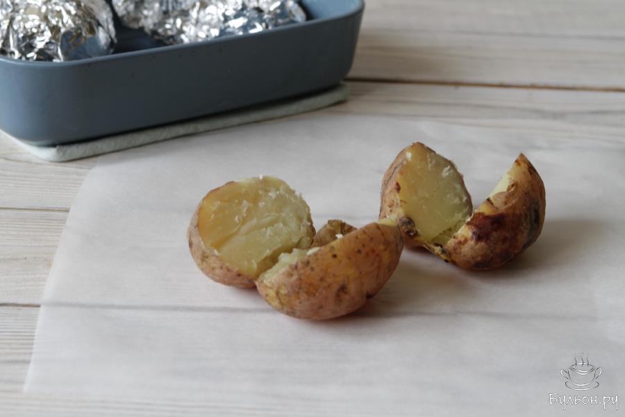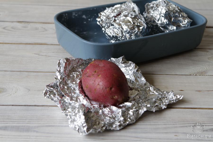2. Картофель лучше всего запекать в фольге "в мундире". Время запекания зависит от размера клубней картофеля. В среднем на это уйдет 40-50 минут при 190 градусах.