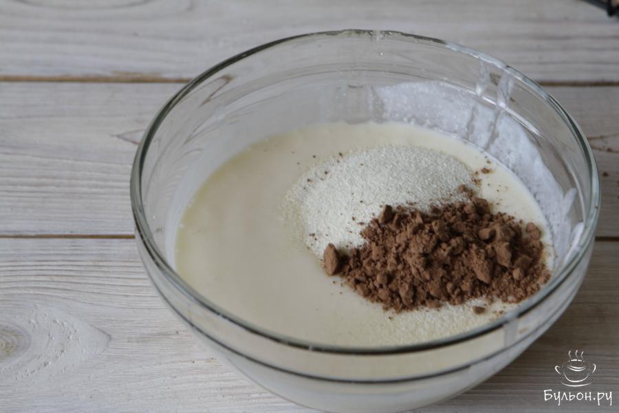 Шоколадно-медовый манник на кефире - угощение, которому будут рады и дети, и взрослые. Приготовить и подать его можно не только в качестве десерта, но и на завтрак. Шоколадный манник на кефире с медом абсолютно неприхотлив в приготовлении, выпекакается в духовке, и смотрится очень празднично и нарядно. Готовить и подавать его лучше всего в порционных формах для запекания. Из указанного количества ингредиентов получается три порции. При необходимости количество ингредиентов можно уменьшить или наоборот увеличить.