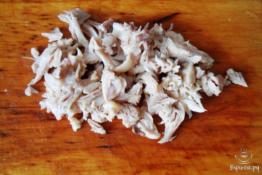 1. В большую кастрюльку кладем куриную грудку, наливаем 2,5 литра холодной воды и доводим до кипения. Варим на небольшом огне бульон под крышкой в течении 20 минут.