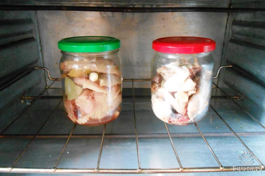 8. Поставить банки в духовку на 30 минут при температуре 150 градусов и еще на 1,5 часа при температуре 180 градусов.
