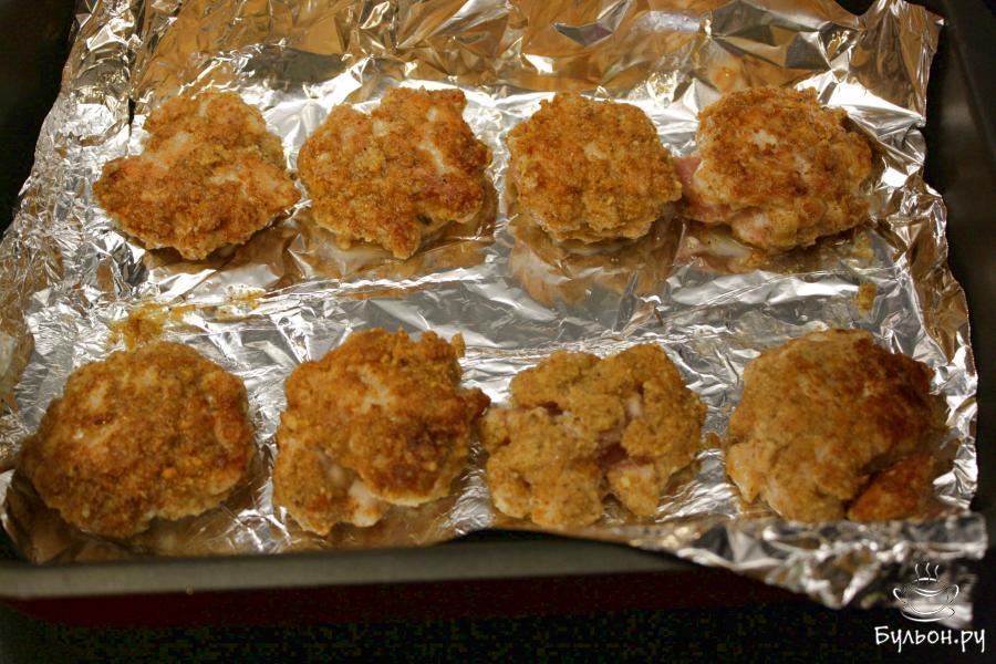 7. Котлеты переложить на противень или в форму для запекания. Довести до готовности в духовке при 180 градусах около 10 минут