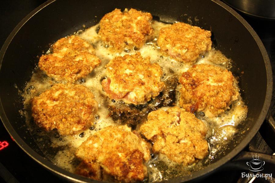 Сочные котлеты из рубленого мяса филе индейки. Диетическое мясо в сочетании с хрустящей корочкой - отличное блюдо для детей и взрослых. Ореховый аромат прекрасно дополнит вкус мяса индейки. Рекомендуется подавать со свежими или отварными овощами нейтрального вкуса. Котлеты можно готовить в духовке и без предварительной обжарки, тогда они будут менее хрустящими, но диетическими и более полезными