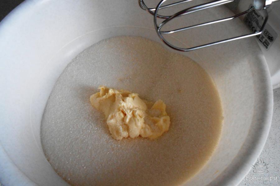 1. Советую выбрать посуду с высокими стенками. Размягченное масло с сахаром взбить с помощью миксера.