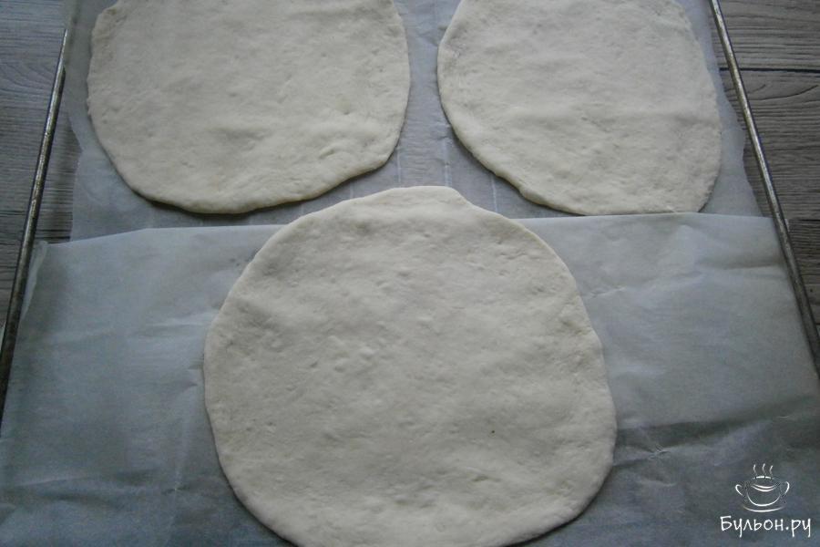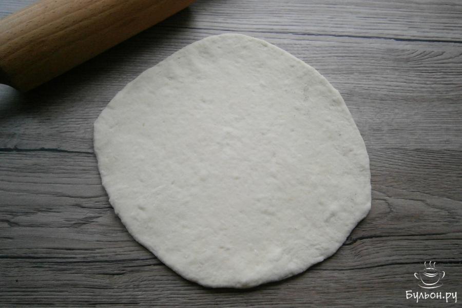 5. Затем, тесто разделить на куски приблизительно по 100 г, каждый - следует раскатать в достаточно тонкую лепешку.