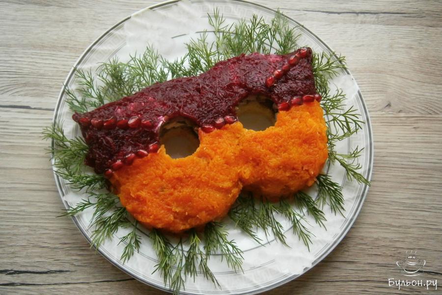 Наверное, все хозяйки хотят приготовить на новогодний стол самые красивые, интересные, вкусные и запоминающиеся блюда. Салат "Карнавальная маска" не только украсит ваш праздничный стол, но и станет одним из главных украшений. Салат очень вкусный, яркий, действительно сочно выделяющийся своим оформлением. Приготовить этот салат не составит особого труда, а положительных отзывов будет предостаточно и от родных, и от гостей. В состав салата входят самые обычные ингредиенты, ничего особенного, но смотрится он шикарно. Обязательно приготовьте этот салат на новогодние праздники, он вам обязательно понравится.