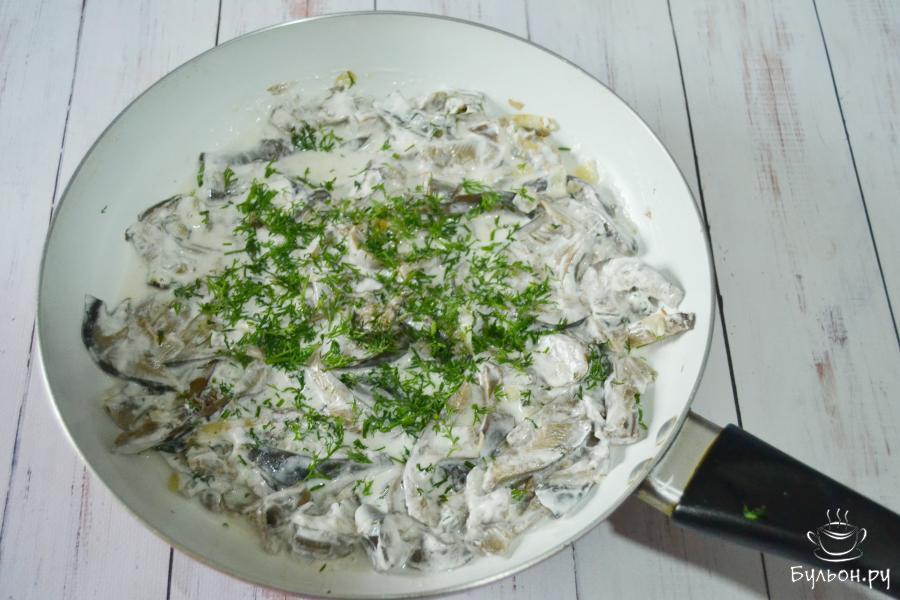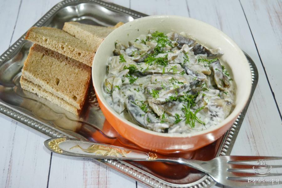 11. Вешенки в сметане готовы. Употреблять их можно с картошкой в любом виде, рассыпчатыми кашами, макаронами.