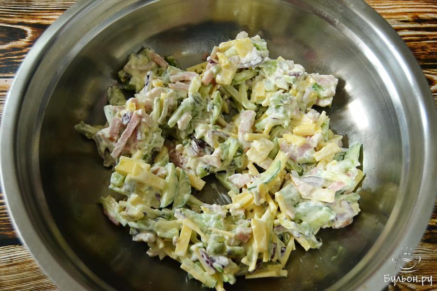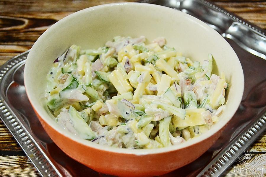 9. Салат с киви, ветчиной и сыром готов. Готовить его можно на Новый год, День Валентина, да и для угощения неожиданных гостей он тоже вполне приемлем.