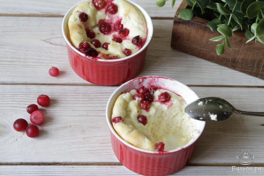 Любителям творожной выпечки сегодня хочу предложить интересный рецепт - это творожное суфле с клюквой. Это суфле будет вполне актуально для Новогоднего или Рождественского завтрака. Готовится блюдо исключительно из творога, без добавления муки, манки и овсяных хлопьев. Клюква придаст суфле праздничный вид. Творожное суфле получается очень легким, с ним не будет переедания, и в то же время вы почувствуете сытость. Предложить его можно как детям, так и взрослым, а вот последним рекомендую с бокалом холодного шампанского. Готовьте, пробуйте и создавайте себе праздничное настроение.