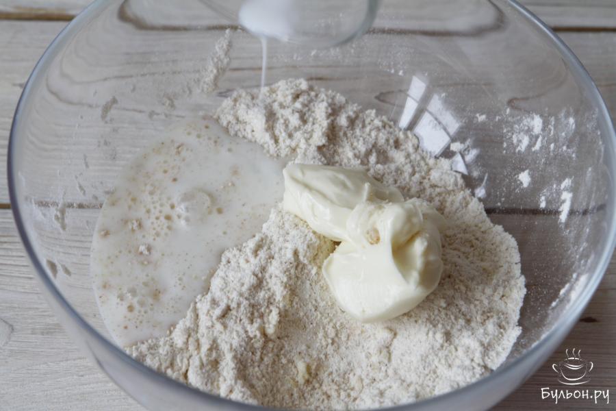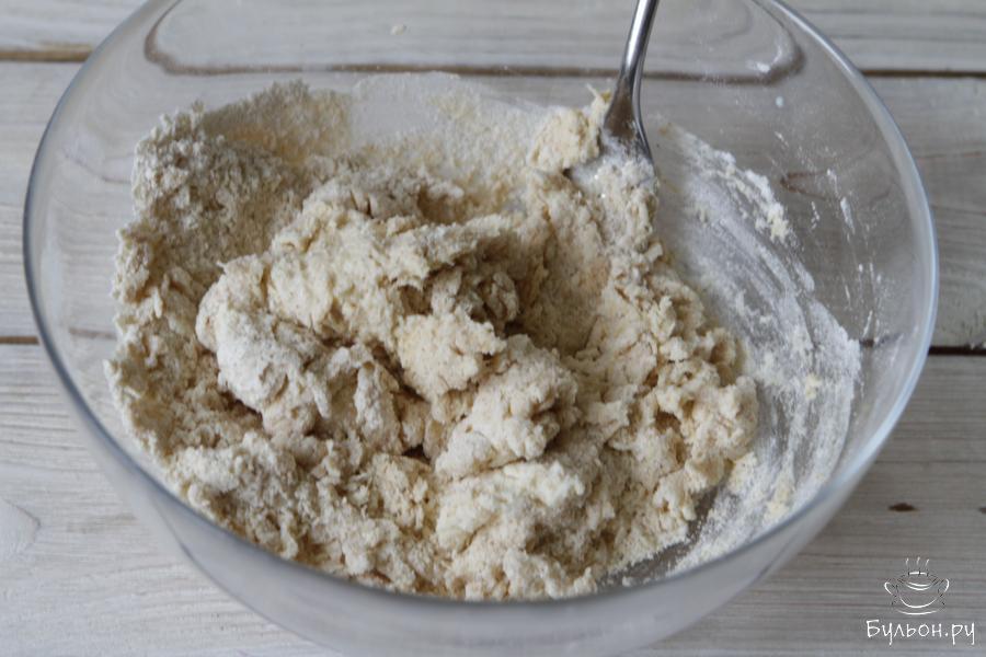 4. Все ингредиенты хорошо перемешать между собой, лучше всего ложкой. Замесить тесто. Оно будет слегка прилипать к рукам, но муку больше добавлять не нужно.