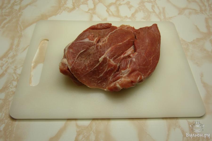 1. Взять кусок мяса. Если оно просто охлажденное, его надо немножко подморозить, так будет легче резать.