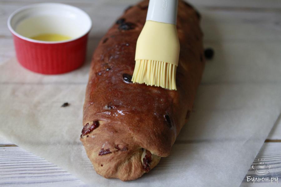 16. Растопить 40 гр сливочного масла. По готовности смазать им горячий кекс пока не закончится все масло.