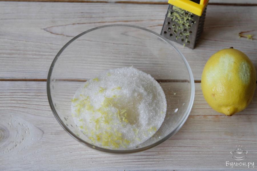 4. В оставшийся сахар добавить ванильный сахар, и сок половинки лимона (это примерно 2 столовые ложки, по желанию еще можно добавить цедру лимона или апельсина). Все хорошо перемешать.