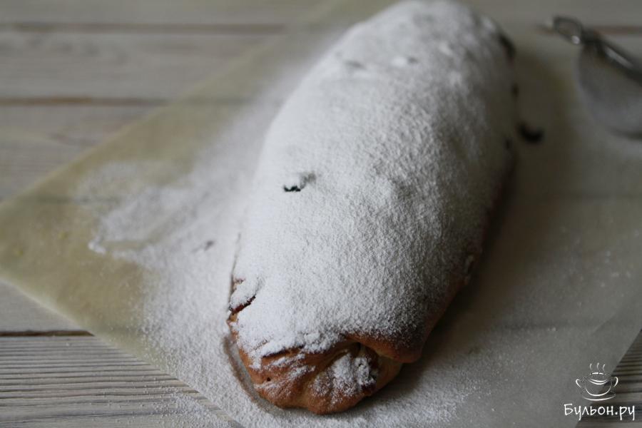 17. Затем присыпать обильно сахарной пудрой. Готовый кекс завернуть в фольгу и убрать в прохладное место.