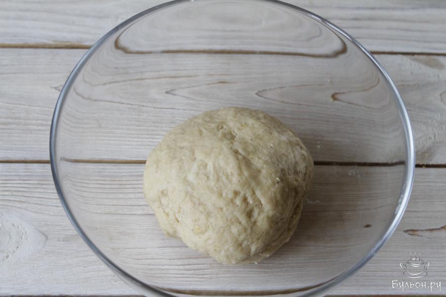 8. Замесить тесто. Чашу накрыть пищевой пленкой и убрать в теплое место на час. Тесто должно слегка подойти.