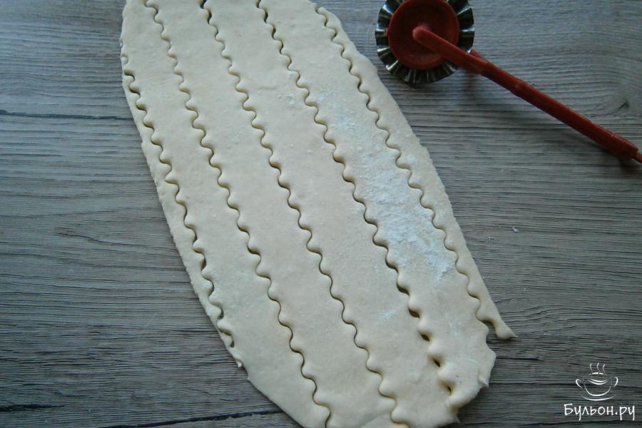 8. Форму аккуратно убрать вместе со стаканом, полоски теста выложить на венок, подгибая края под него. Сверху на полосочки из теста поместить по ягодке красной смородины.