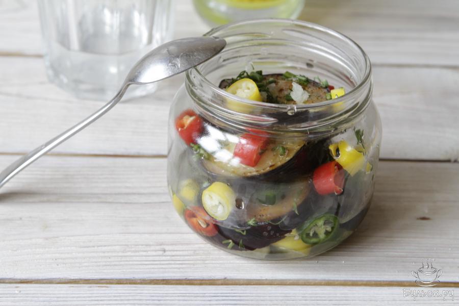 10. Банку закрыть крышкой и убрать в холодильник. Подавать острую закуску из баклажанов можно уже через пару часов.