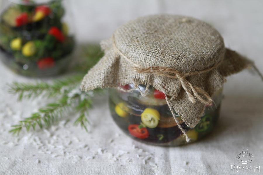 По традиции на новогоднем столе присутствуют салаты с майонезом, это традиционный салат "Оливье" и "Селедка под шубой". Разнообразить новогодний стол могут и овощные салаты или закуски из овощей. Такие блюда будут вполне актуальны для тех, кто соблюдает Пост. Сегодня хочу предложить вам вкусную острую закуску из баклажанов. Этот рецепт настолько прост, что приготовить его сможет любая хозяйка. А сочетание острого перца и кисло-сладкого маринада придадут ей особую изюминку. Готовую закуску лучше всего выдержать в холодильнике пару дней.