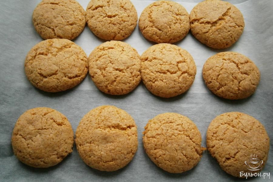 6. Выпекать печенье около двадцати минут при температуре 190 град. Готовое печенье получится красивым, румяным, с трещинками сверху. Дать печенью остыть.