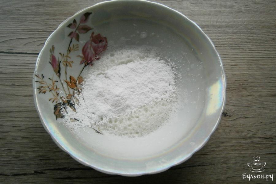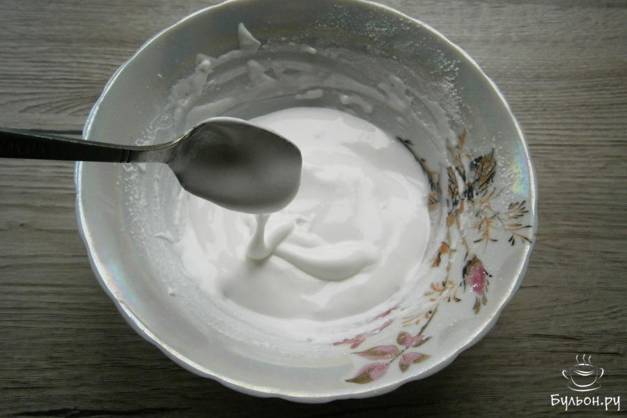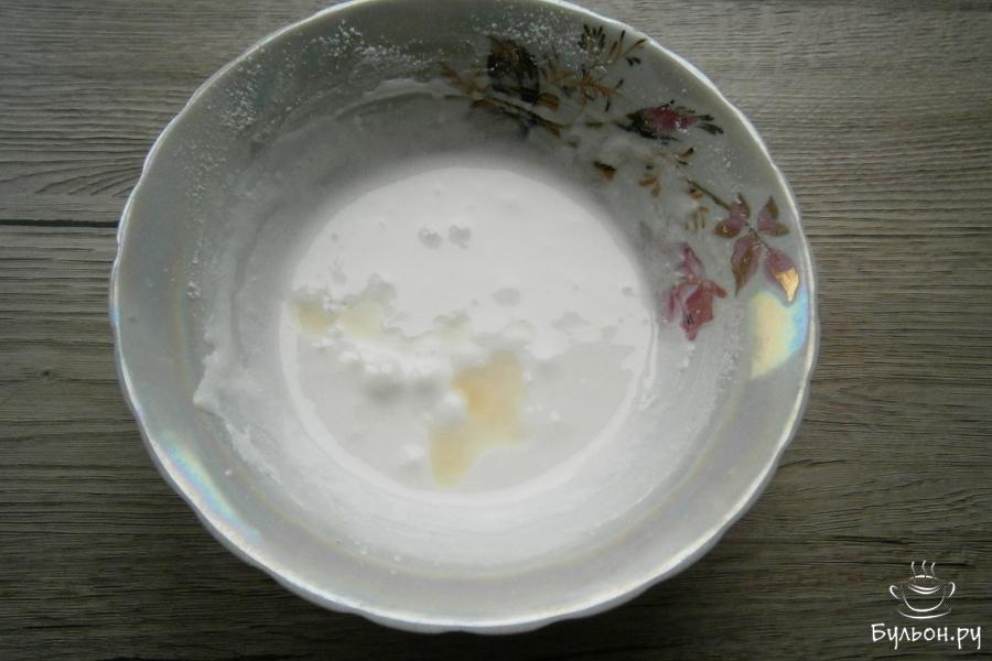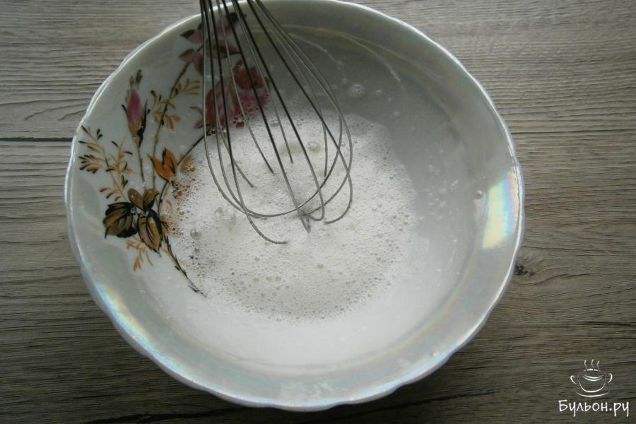 7. Приготовить глазурь для росписи печенья. Для этого нужен будет сырой белок куриного яйца. Его следует взбить венчиком до пены.