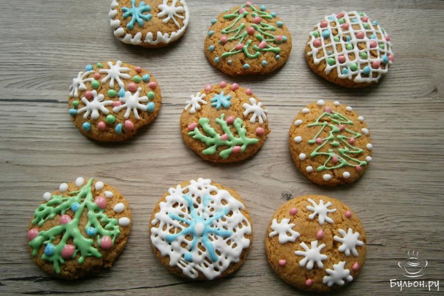 12. Далее, остывшее печенье можно украшать любыми рисунками, как вам подскажет фантазия. Дать глазури застыть и можно красивое новогоднее печенье подавать к столу или упаковать для подарка. Приятного аппетита.