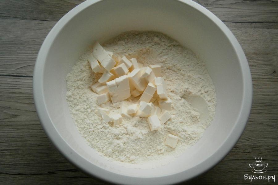 2. Добавить порезанный кусочками холодный маргарин, вместо которого можно использовать сливочное масло.