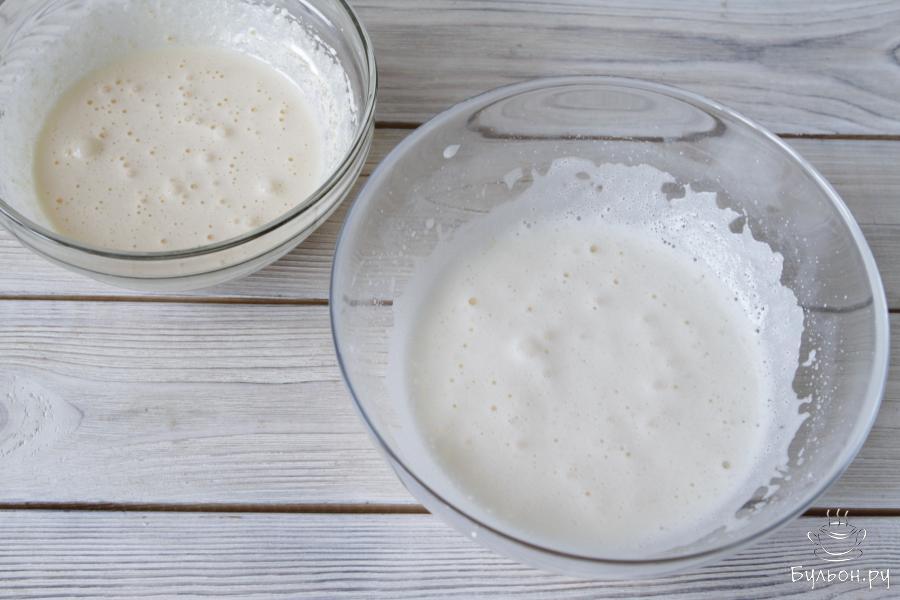 1. Отделить желтки от белков. Белки взбить с ванильным сахаром до увеличения в объеме. Желтки с сахарной пудрой.
