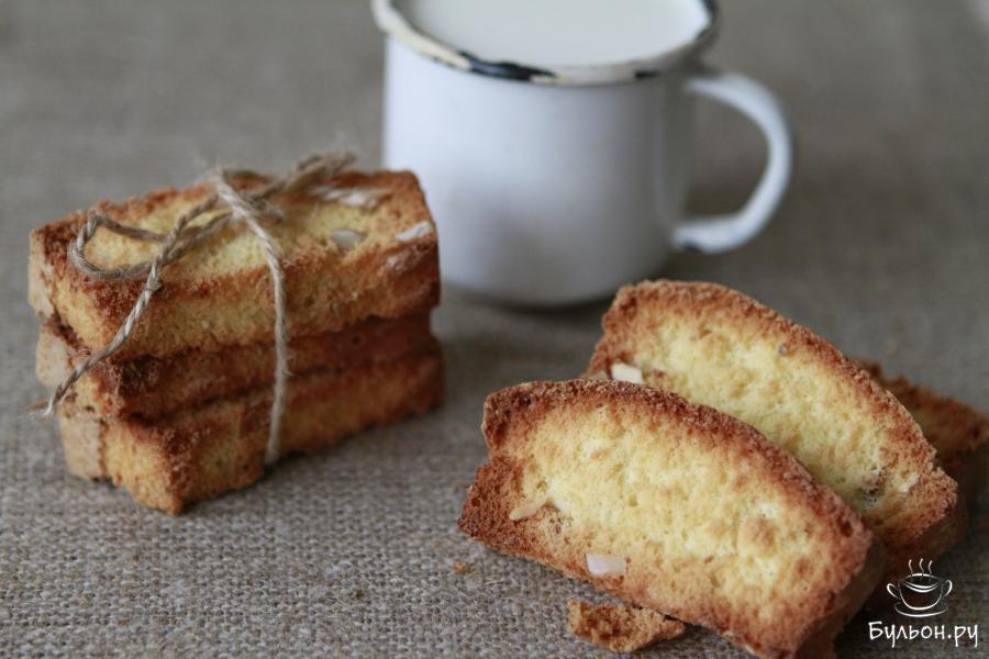 Бисквитные сухарики готовятся из традиционного бисквитного теста. По желанию в готовое тесто можно добавить цукаты, любые орехи или сухофрукты. Выпекаются они в два этапа. На первом этапе замешивается бисквитное тесто, далее оно выкладывается в форму для запекания и отправляется в духовку. По готовности бисквит извлекают из формы и дают ему полностью остыть. А дальше уже бисквит нарезается на ломтики, которые подсушивают в духовке с двух сторон. Хранят готовые сухарики в герметичной посуде. Подавать можно с кофе, чаем или с горячим топленым молоком.