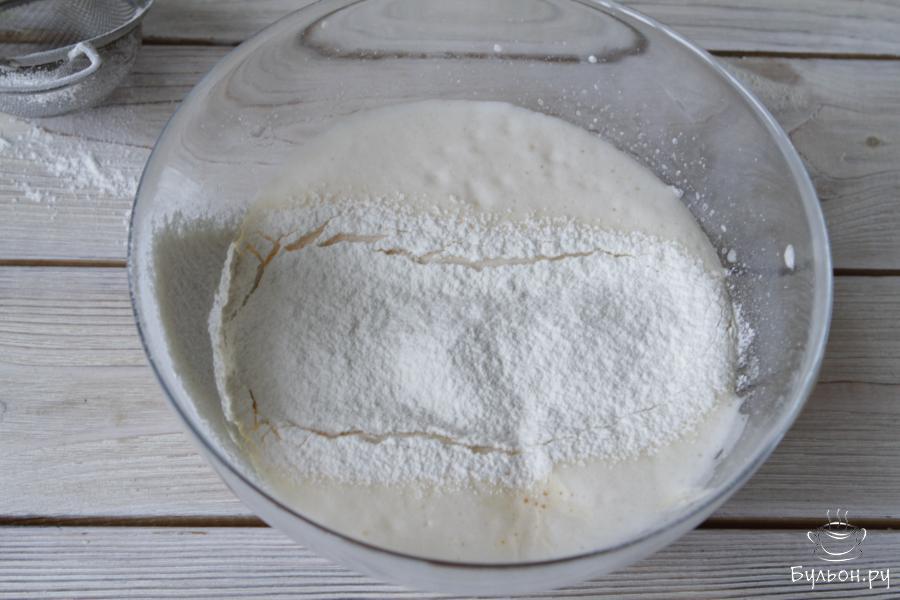 5. Бисквитное тесто выложить в форму и отправить в заранее разогретую духовку. Выпекать при 180 градусах 30 минут.