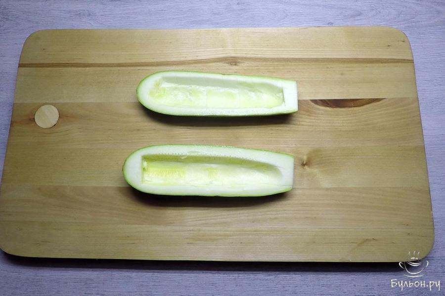 5. С помощью ножа и ложки вынуть мякоть. В рецепте она не понадобится. Ее можно использовать, например, для приготовления супа-пюре.