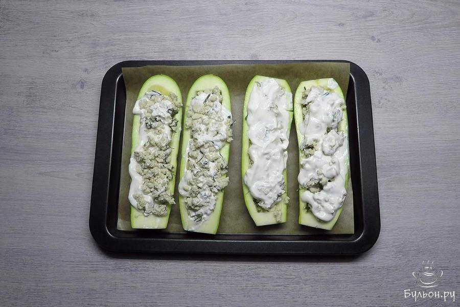Лодочки из кабачков - всеми любимое блюдо. Я предлагаю приготовить более полезную вариацию без использования майонеза и без обжаривания начинки. Я предлагаю фарш потушить в небольшом количестве масла и воды. Для сочности добавить натуральный густой йогурт, например, греческий. Чтобы получилась аппетитная корочка, в конце приготовления лодочки посыпем небольшим количеством сыра, чтобы не успел пережариться. Диетические лодочки из кабачков можно употреблять при лчебной диете номер 5, при правильном питании, деткам от года и даже кормящим мамам. Попробуйте вкусные лодочки.