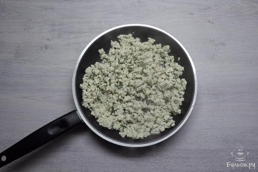 4. В сковороду или сотейник налить растительное масло с водой. Притушить фарш, периодически помешивая, до готовности. Лишняя жидкость должна выпариться.