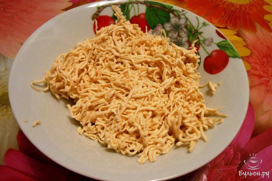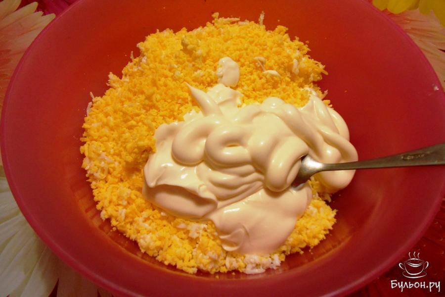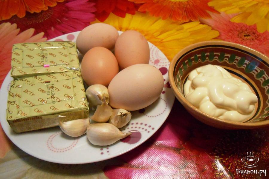 1. Подготовить необходимые продукты. Яйца сварить вкрутую, охладить. Из моркови вырезать шапочку и нос для "снеговиков".