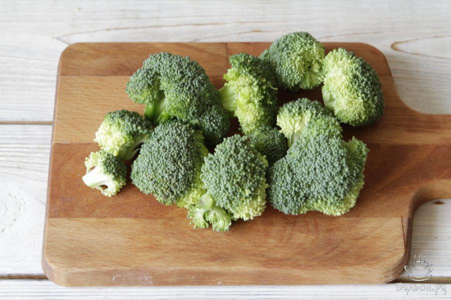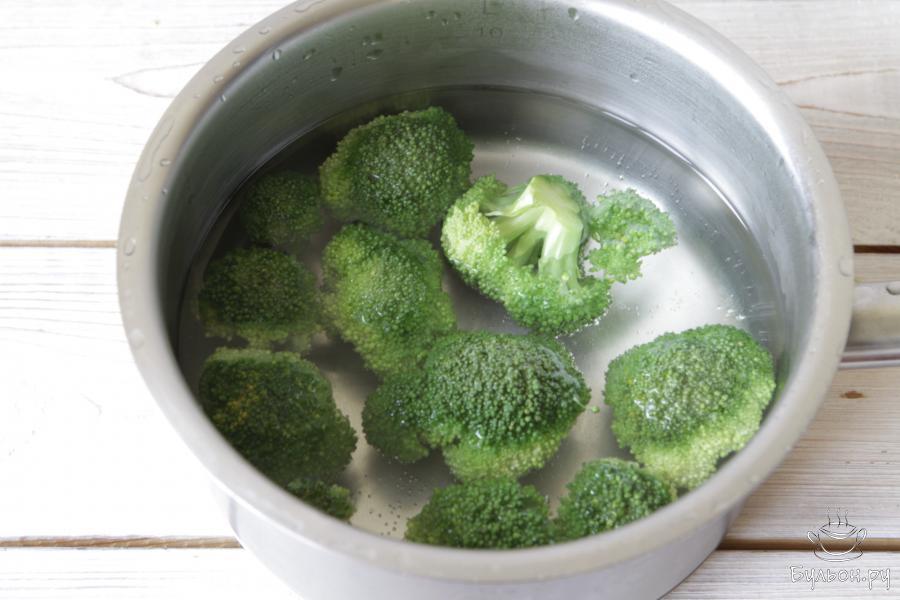 2. Опустить в кипящую воду и варить 2 мин. Достать и сразу же переложить в холодную воду ( это необходимо для сохранения цвета брокколи).