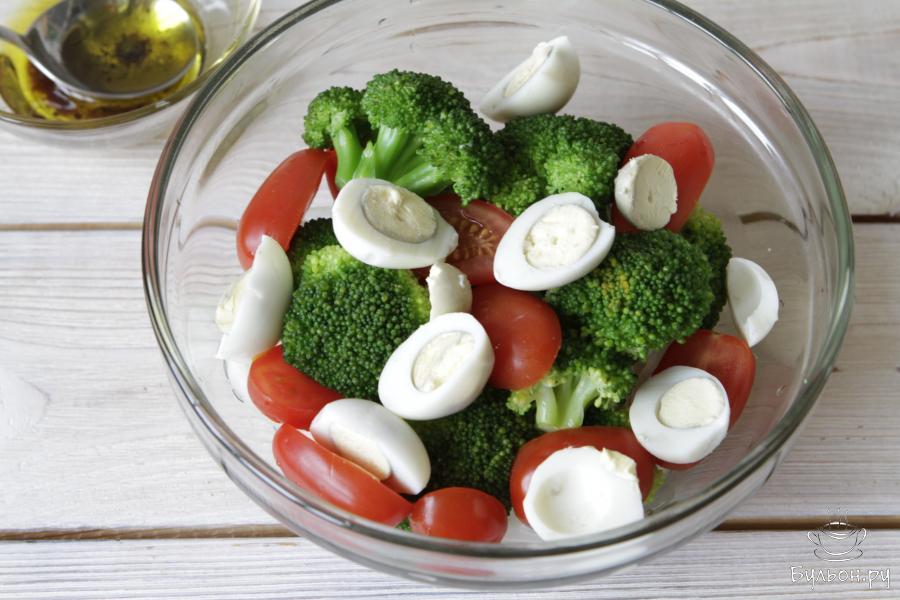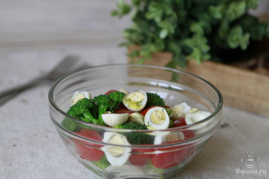 Салат из брокколи с яйцом и помидорами простой диетический салат. Одни называют его фитнес салат, другие салатом королевы Медичи. Насколько известно, она очень любила брокколи, именно поэтому такого плана салат для нее готовили довольно часто. Салат из брокколи с яйцом и помидорами получается не просто полезным, но еще и красивым, в этом вы сами можете убедиться. Ингредиенты в салате можно нарезать в произвольной форме, но главное не мельчить. Заправляют салат оливковым маслом со специями, или сметаной. Подают салат сразу же после его приготовления.