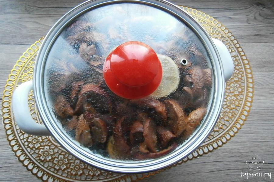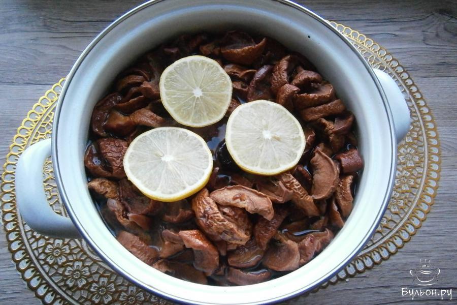 7. Добавить 2-3 кружочка лимона. Поставить кастрюлю на небольшой огонь и как только начнет все кипеть, сразу же выключить газ.