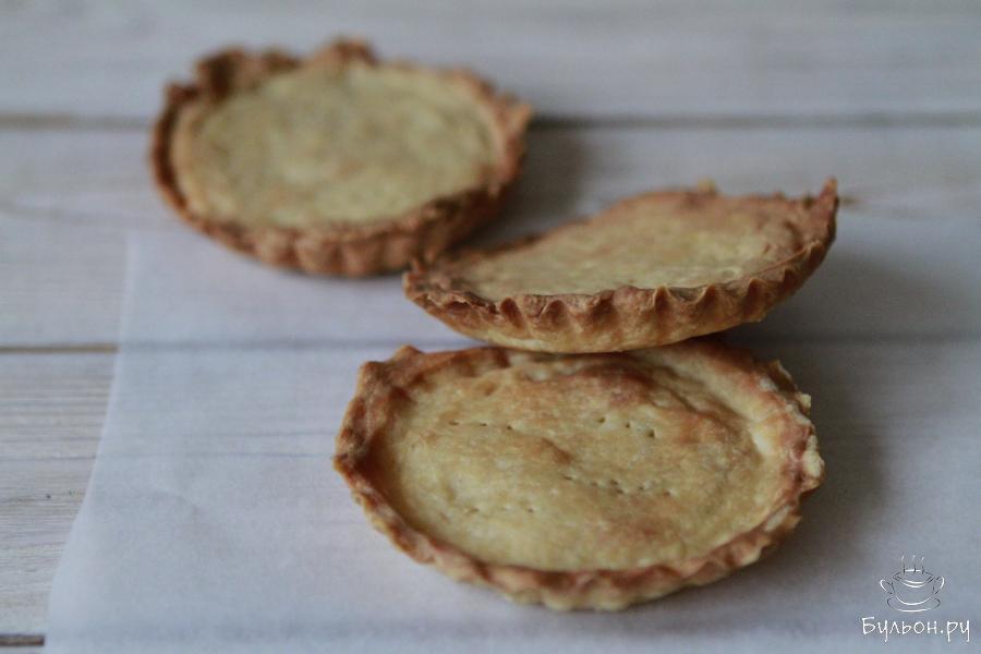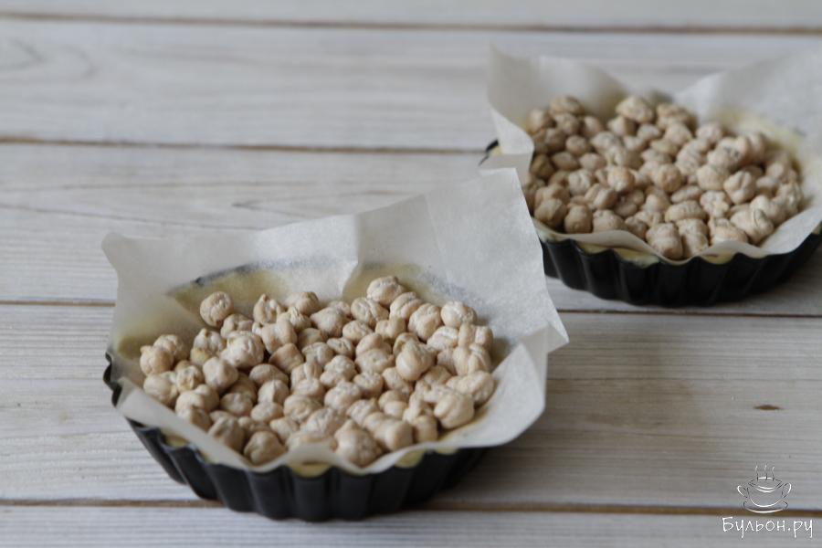 5. В тарталетки выложить груз, например горох, и выпекать их с грузом в разогретой духовке 10 минут при 180 градусах. Затем снять груз и выпекать еще 15 минут.