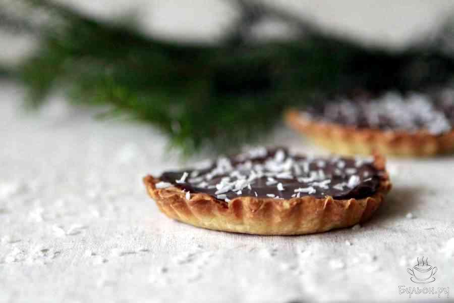 8. Перед подачей тарталетки с начинкой из шоколадного плавленного сыра присыпать кокосовой стружкой.