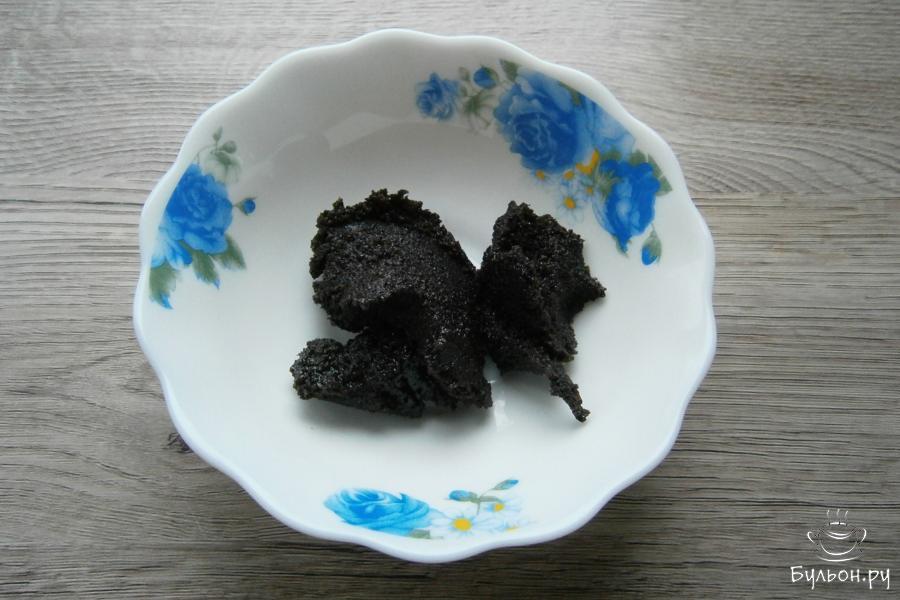 7. Мак проварить 10 минут в небольшом количестве воды - 0,5 стакана, а затем, прокрутить на мясорубке или измельчить в блендере, чтобы получилась кашица.