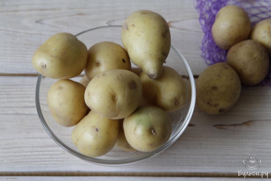 1. Подготовить клубни картофеля. Молодой картофель помыть, не чистить. Если клубни картофеля большие, то лучше всего разрезать их на две половинки.