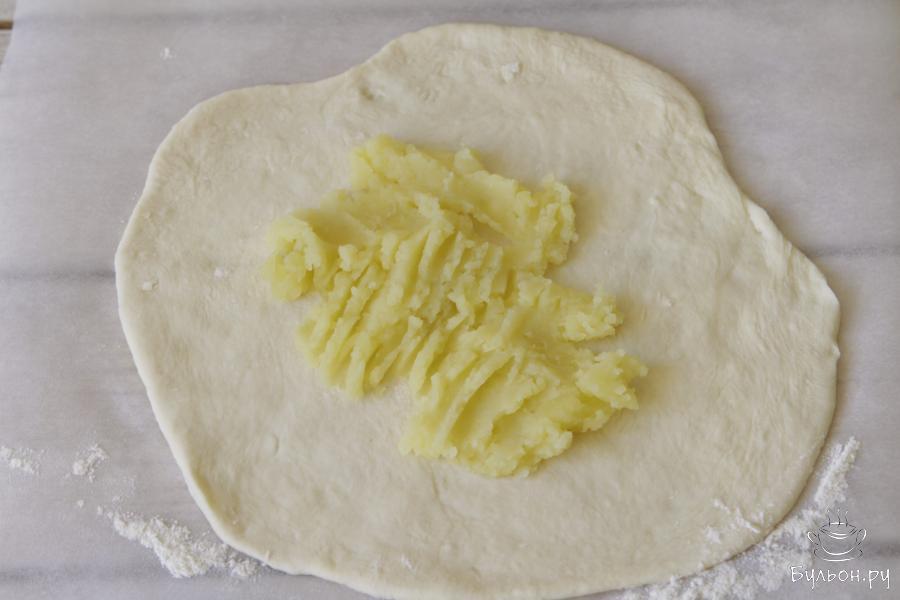 4. Картофель отварить и приготовить из него пюре (не добавляя ни молока, ни картофельной воды), пюре не должно быть жидким, посолить. По желанию можно отдельно обжарить репчатый лук и добавить в пюре.