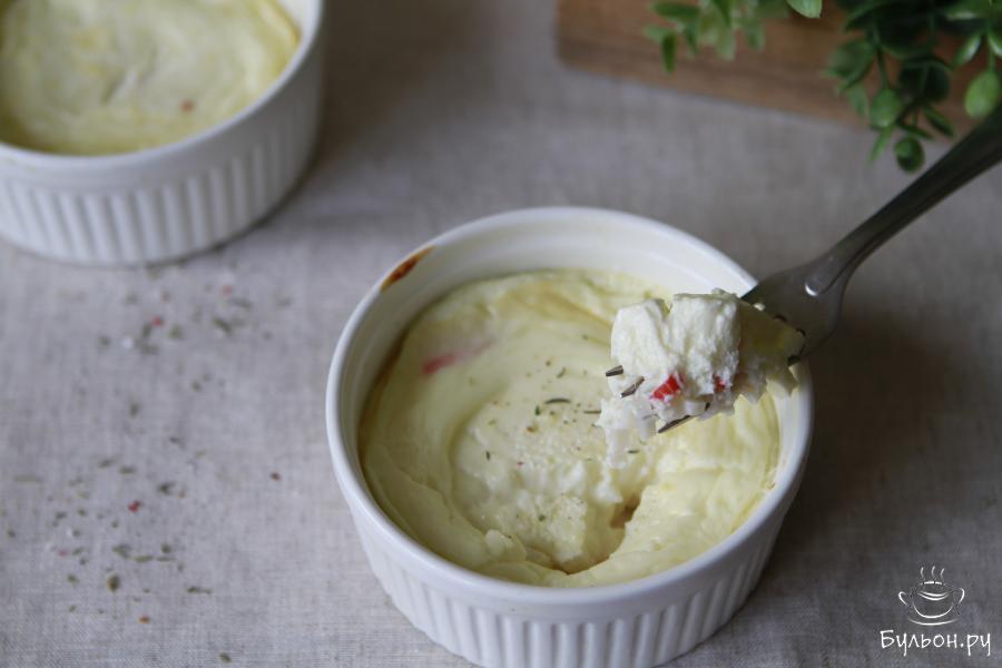 7. Омлет с крабовыми палочками в духовке готов. Подавать его сразу и незамедлительно. Перед подачей присыпать свежей зеленью или сушеными травами.