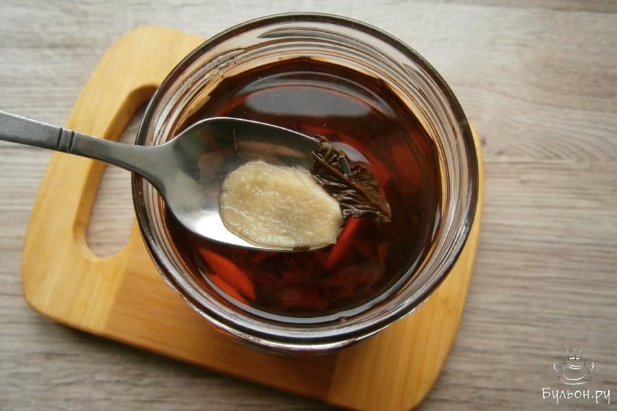 8. Залить все это заваренным процеженным чаем с имбирем. Сразу же подать вкуснейший и очень полезный чай к столу. Приятного аппетита.