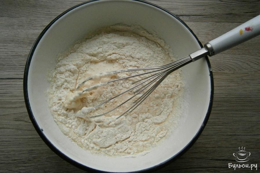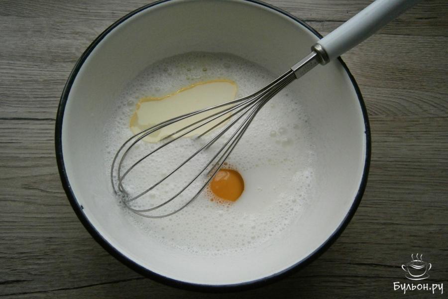 2. Добавить сюда одно яйцо и влить 2 ст. л. любого растительного масла. Все тщательно взбить венчиком.